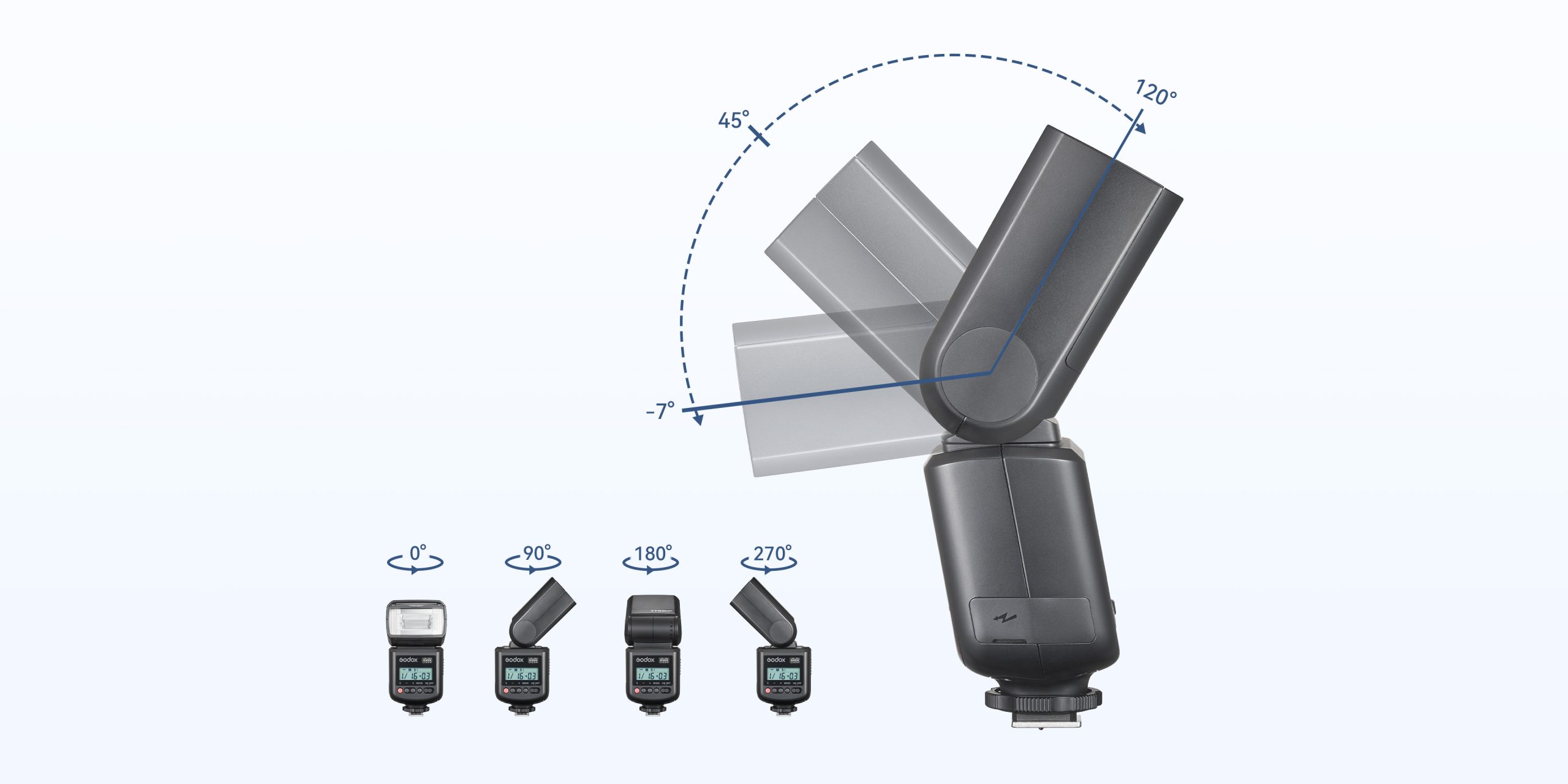 Vertically Rotatable Flash Angle -7°~120°
