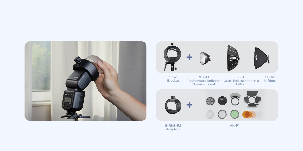 With up to 400 full-power flashes on a fresh set of NiMH AA batteries, a fast 1.8s recycle time, and 3 flash modes (Manual, S1, S2), this compact speedlight delivers reliable and consistent performance. The rotatable head allows for bounce flash techniques, while the built-in diffuser and reflector panel create natural, flattering light with enhanced catchlights. The TT520III is also compatible with Godox accessories like the S-R1/S-R2 round head adapters and AK-R1 magnetic modifier kit, and can be mounted to Bowens modifiers using the optional S/S2 bracket, unlocking creative possibilities in your studio or on location.